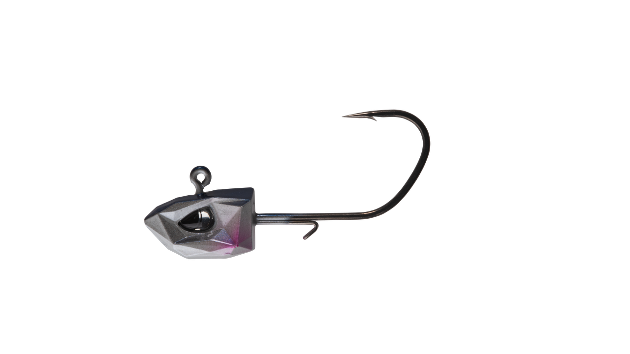 The BKK REFRAX Jig head is a high-performance jig head designed with a multifaceted profile, lifelike 3D holographic eyes, and custom paint finishes that accurately mimic various baitfish species—perfect for fooling even the most experienced predators. Its dual-wire bait keeper securely holds soft plastics in place without tearing, helping you extend the life of your bait. Crafted from Hyper Carbon Steel (HCS), the REFRAX Jig head offers enhanced strength and durability compared to traditional high-carbon steel, making it ideal for landing trophy-sized fish. A Super Slide (SS) coating and extra-sharp needle point ensure smooth penetration and maximize hook-up efficiency. Available in a range of weights and hook sizes, the REFRAX Jig head is perfect for both swimbait fishing and vertical jigging at various depths. For added convenience, weight and hook size are stamped on the belly for quick identification.